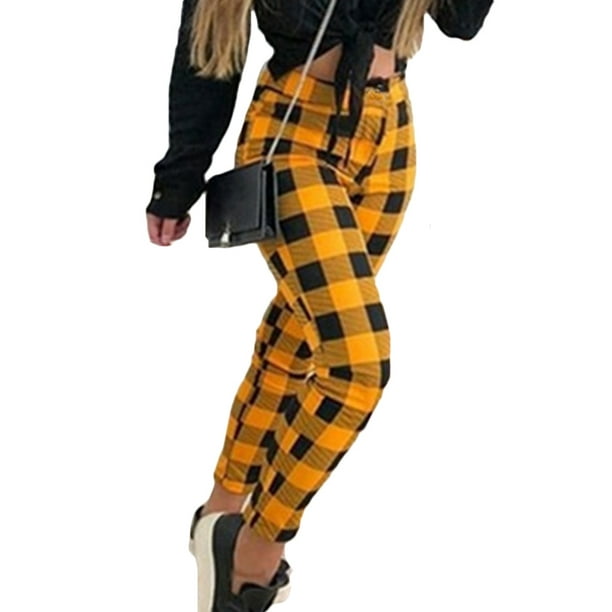Lallc Women S Plus Size High Waist Plaid Casual Pants Skinny Work Stretch Trousers Walmart Com Walmart Com