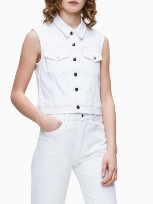 Calvin Klein Womens White Denim Vest In Size Large Nwt Ebay