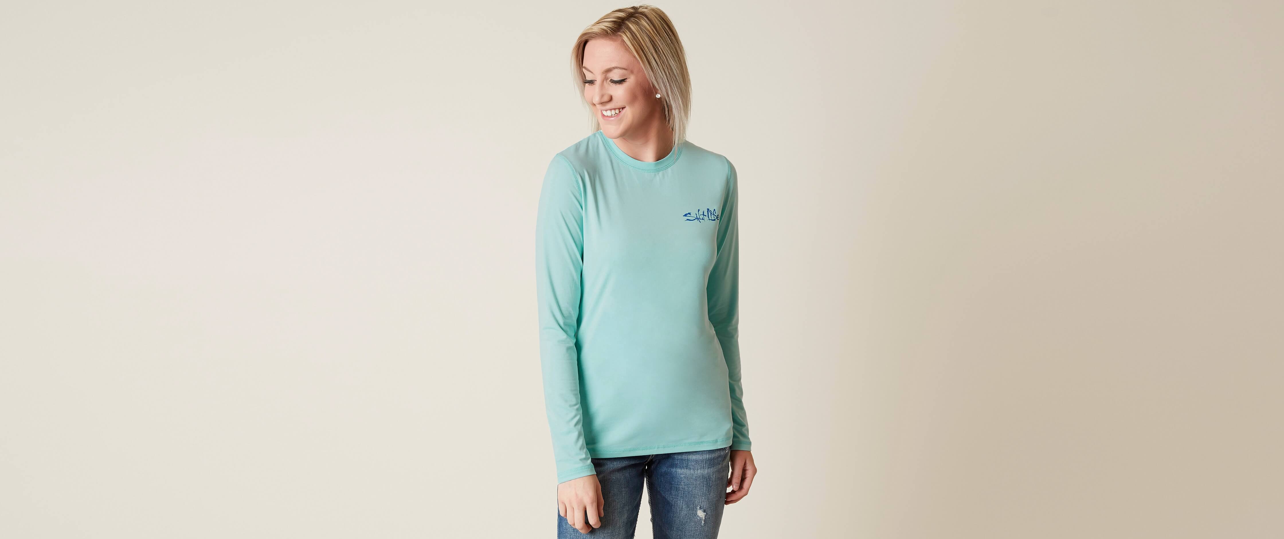 The womens long sleeve shirts from Salt Life are figure flattering and beautiful. Salt Life ladies tees dresses shorts leggings pants hats hoodies sweatshirts and more are your best choice for the Salt Life all with beach style. 5 out of 5 stars 16 16.