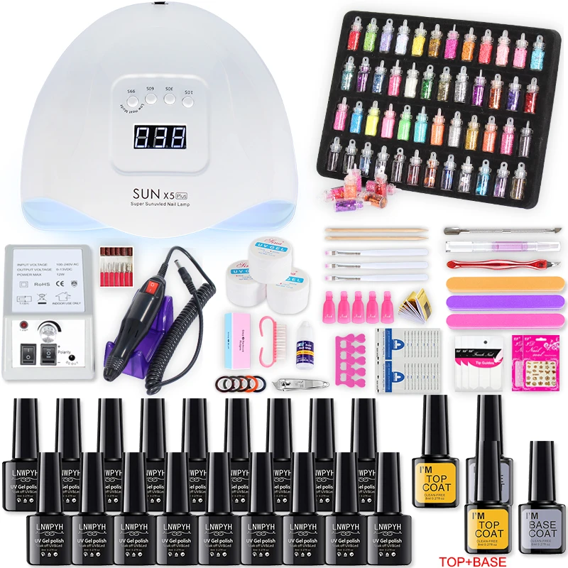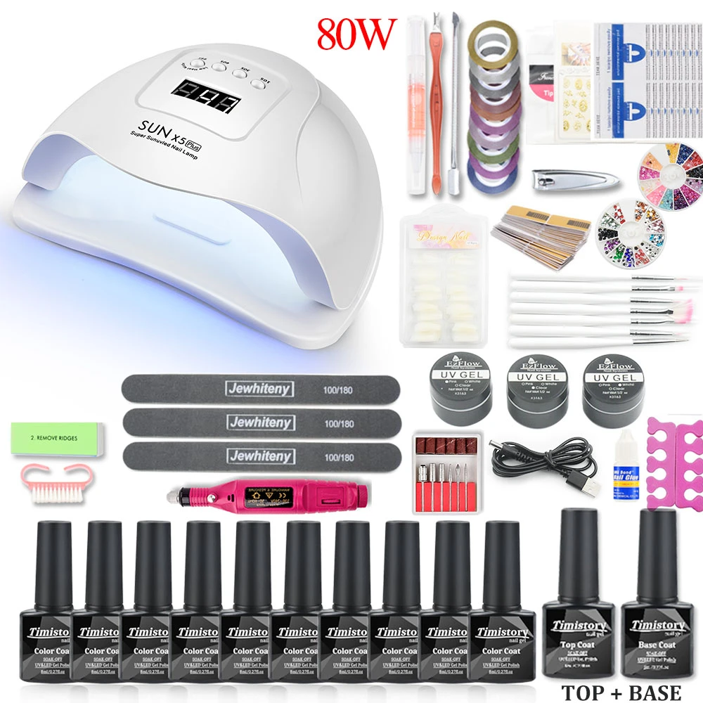 Nail Set 36w 80w Led Uv Nail Lamp Dryer Gel Varnish Kit Soak Off Manicure Gel Nail Polish Set Uv Extension Kit For Manicure Sets Kits Aliexpress