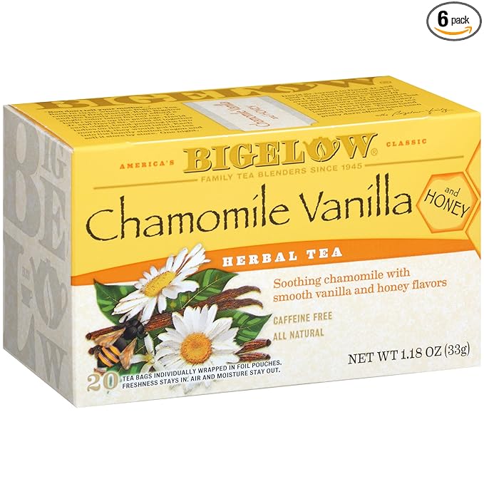 Amazon Com Bigelow Chamomile Vanilla With Honey Herbal Tea Bags 20 Count Box Pack Of 6 Caffeine Free Herbal Tea 120 Tea Bags Total Grocery Gourmet Food