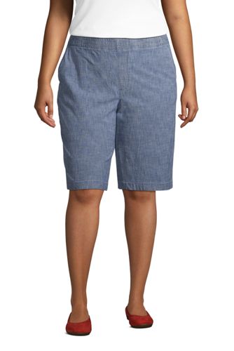 Women S Plus Size Mid Rise Elastic Waist Pull On 12 Chino Bermuda Shorts Lands End